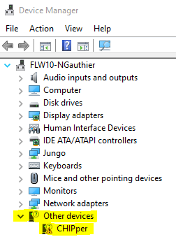 If that happens, check your Device Manager to see if the Eliminator Chip drivers are properly installed. If no drivers are present, you’ll see the following when the Burner is connected to the computer: