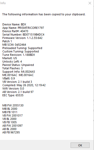 - Select “Display Device Setting and Serial Number” From the advanced Operations menu, then select “copy to clipboard”. It will pull up your clipboard with something that looks similar to the picture below: