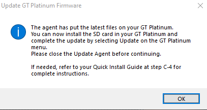 6. Update the GT Platinum from the SD card by choosing Update GT Software, or Update GT Firmware on the Main Menu. (option will be all the way at the bottom of the main menu.)