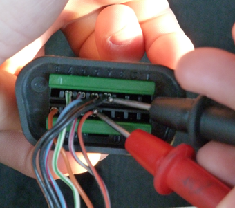 Step3: Check Pin16 for voltage. Pin16 is battery power and should have 12v. Set the Multimeter to read voltage. Position the multimeter leads on Pin16(Pwr) and Pin4(Grd).